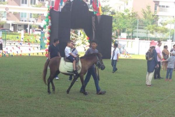いっぱいの各国の食べ物(日本のブースも出ていました。)の出店、乗馬が出来たり、アドバルーンに乗れたりと本当に遊園地出現でした。