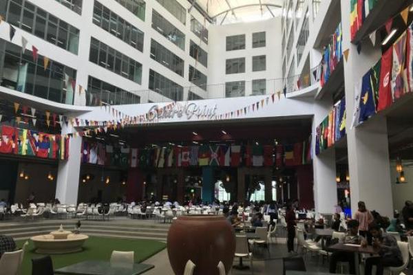 2日目の2校目は、INTIカレッジ(スバンキャンパス)を訪問しました。実はINTIのメインキャンパスはニライという国際空港に近いエリアにありますが、市街からはかなり遠いため、時間の制約もあるため代わりにスバンキャンパスを訪問することが多いです。INTIの特徴としては、米国、英国、豪州などへの編入制度が充実していること、奨学金が出やすいこと、産業界との関係が強く就職に強いこと、などが挙げられます。キャンパスツアーのあと、2名の日本人学生も交え、昼食会に招待していただきました。学生の一人はINTIの料理学部(Culinary Arts)で勉強をしている女学生でした。日本では料理学部の学士号(4年生大学の学位)はあまりありませんが、マレーシアではごく一般的な学士号のコースです。「好きな料理を(好きな)英語で勉強でき、学士号の資格がとれるのは幸せ」と言っていました。将来はフードコーディネーターになりたいということです。