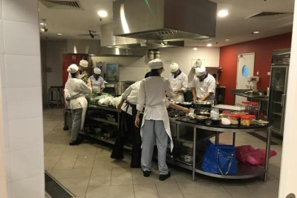 3校目は、ベルジャヤ大学です。今までの訪問先はどちらかと言えば大型の総合大学でしたので、最後にホスピタリティのブティック大学のイメージをもつ(実際は他の学部もありますが、)ベルジャヤ大学を比較の意味としても組み入れさせていただきました。ベルジャヤはマレーシアのコングロマリットでホテルの開発会社としても有名な企業グループです。実は京都のフォーシーズンホテルもベルジャヤ開発のホテルの一つです。やはりこちらの売りは、キャンパスがベルジャヤ運営のホテルと同じビル内にあるため、実際のホテルの施設を利用した実習ができることです。他の総合大学が、どちらかと言えば模擬的な施設を使って実習するのに比べ、ベルジャヤでは実際のホテルを利用するため、より実践的で本格的です。高校の先生方も、実際のホテルが学習の場というベルジャヤの環境には、驚いていました。