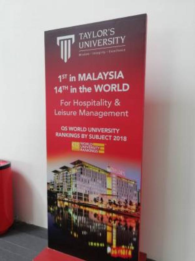 S先生はホスピタリティ学部の方が入りやすいし、これからは人材が求められるかもしれないとおっしゃっていましたので、今回テイラーズ大学の訪問はホスピタリティ学部の見学がメインでした。テイラーズ大学に行ったことはありますが、校内にあるホスピタリティ学部の施設を拝見するのは初めてでした。ホスピタリティ学部の施設は1つの特定のビルにあり、すべての授業はそのビルの中で行われるとのことですので、移動は非常に便利です。施設を見た瞬間でさすが世界ランキング14位のホスピタリティ学部だと強く思いました。調理室やレストランなどにある設備は全て揃えており、整えているのを見て私はとても感嘆しました。ハウスキーピング、フロントオフィスの施設も拝見して、まるでホテルのようでした。私もこのような良い施設の揃えた場所でホスピタリティを学びたかった(笑)。
